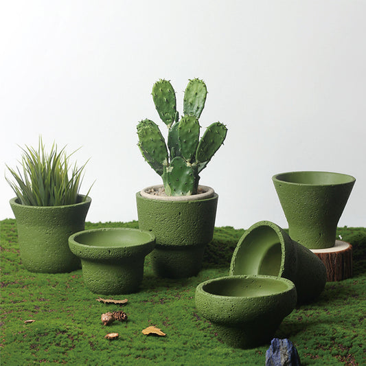 Bucket Hat Style Cement Plant Pot | Olive Green